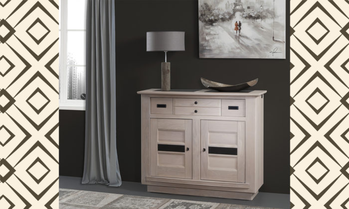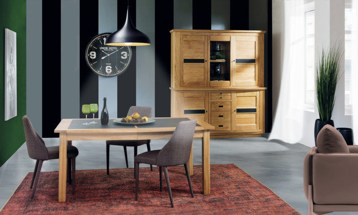 Silvano – Enfilade 4 portes 1 tiroir chêne massif avec incrustation véritable céramique