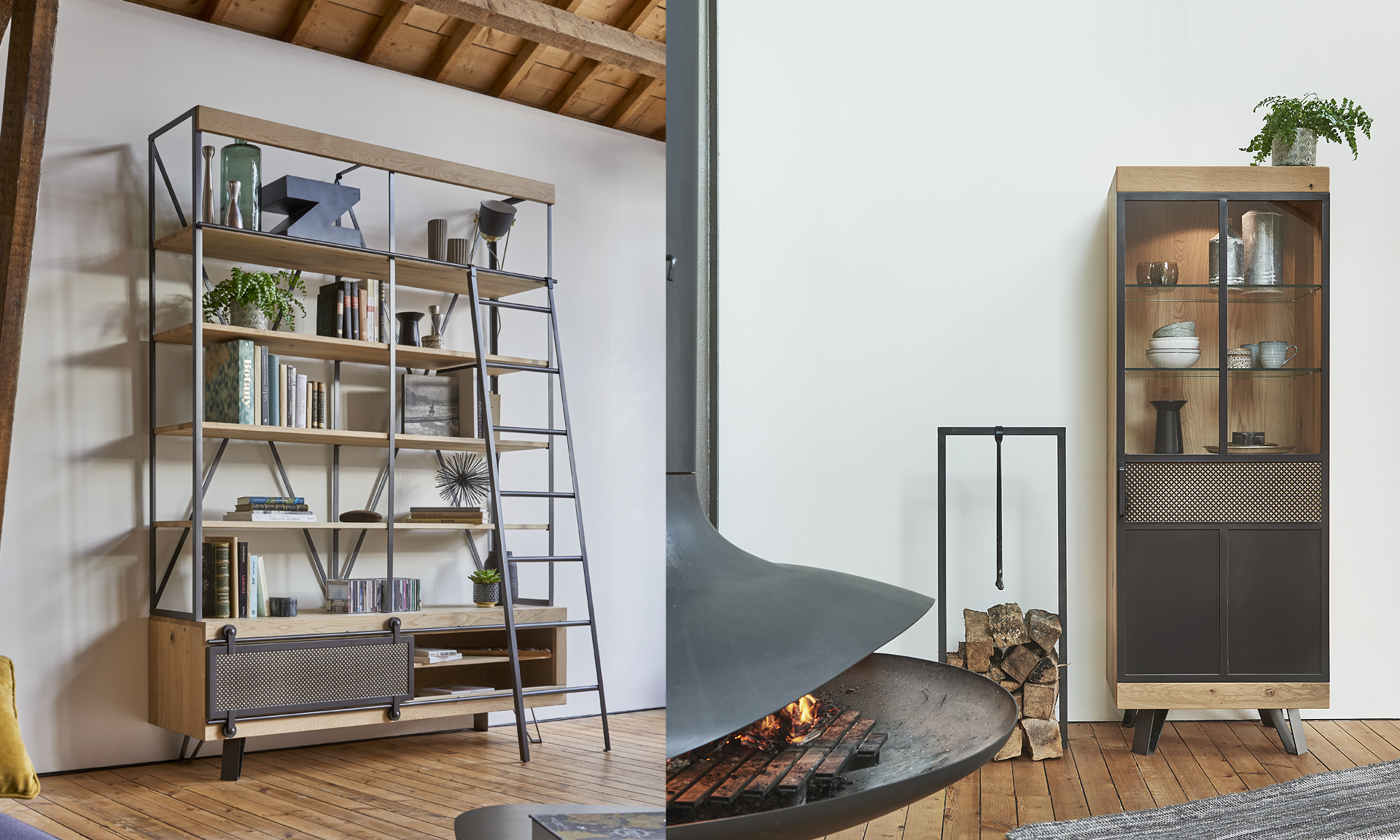 • Bibliothèque corps haute L.174 H.175 P.37 cm corps bas L.174 H.230 P.45 cm