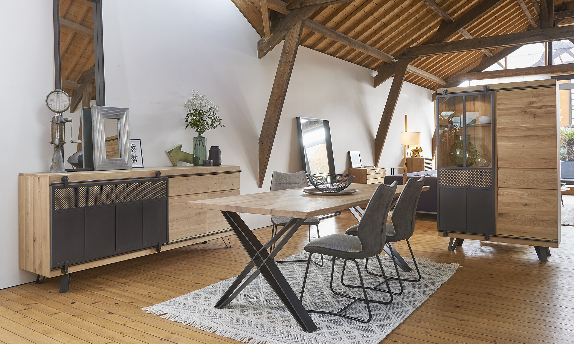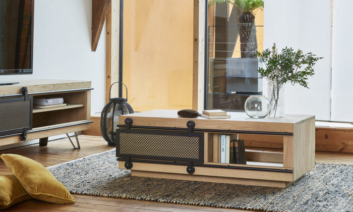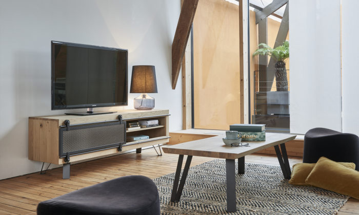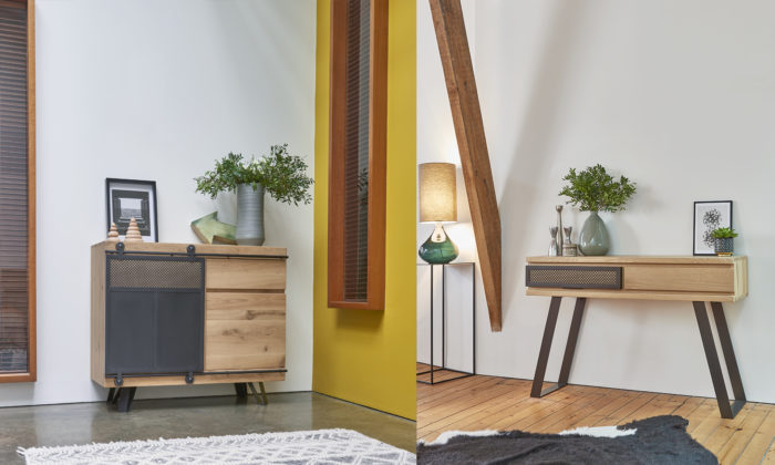 • Enfilade 1 porte métal coulissante 2 portes battantes, 1 tiroir L.225 H.94 P.52 cm